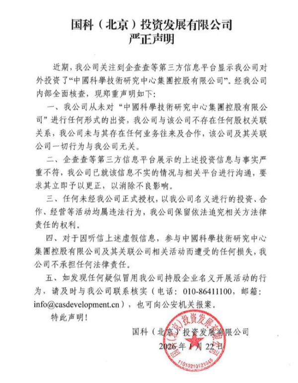 國科(北京)投資發(fā)展有限公司嚴正聲明